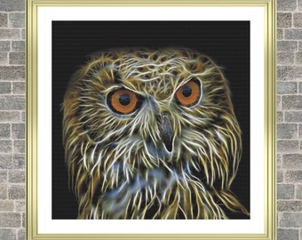 Fractal Owl | DMC Cross Stitch Pattern | Three Counted PDF Charts in Instant Download